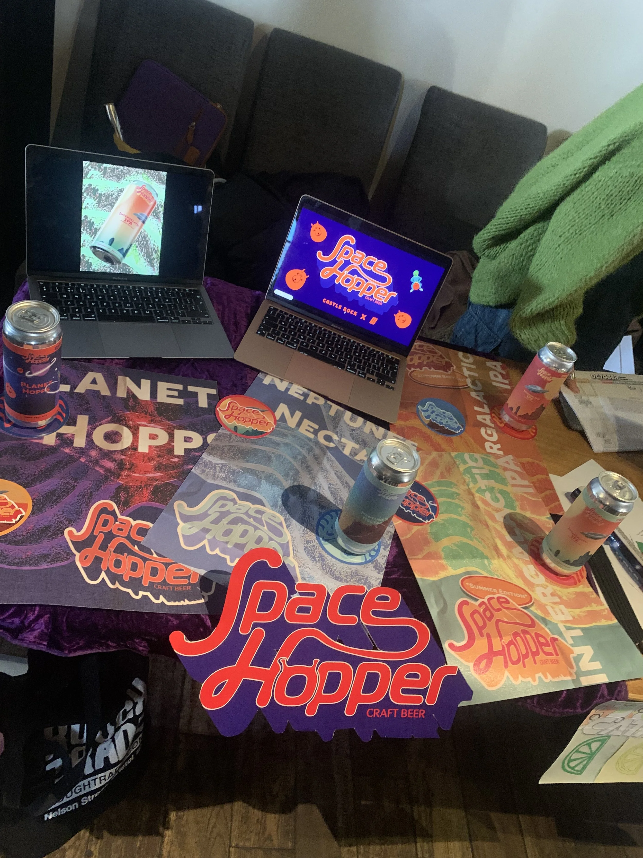 In my group, I put myself up to be the graphic designer of the project. We came up with the concept ‘Space Hopper’ a retro space themed brand that taps into the escapism rave culture can create.